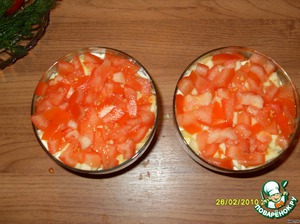 Нарезать помидор мелко, уложить на яблоко 4 слоем.