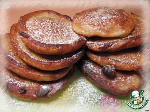 Перед подачей на стол теплые оладушки посыпьте сахарной пудрой.
