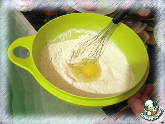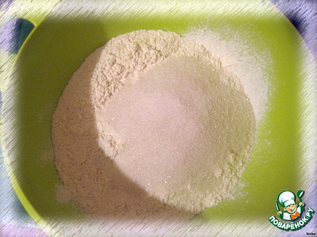 Смешайте муку, сахар, соду.