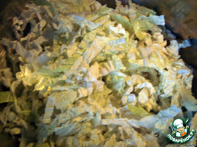 • Пекинскую капусту нарезать или порвать на небольшие кусочки руками.
