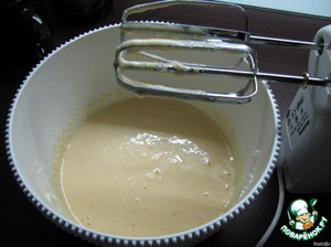 Взбить яйца с сахаром до белой пены. Творог смешать с манкой. В творожную массу влить яичную смесь, постоянно помешивая. Добавить в тесто ванилин и соду (погасить).