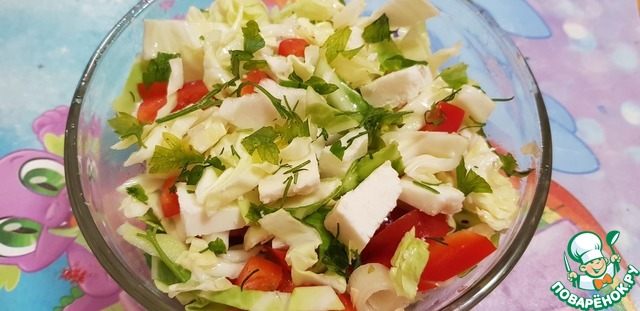 Легкий салатик с оригинальным вкусом. За фото спасибо поваренку yuvl.