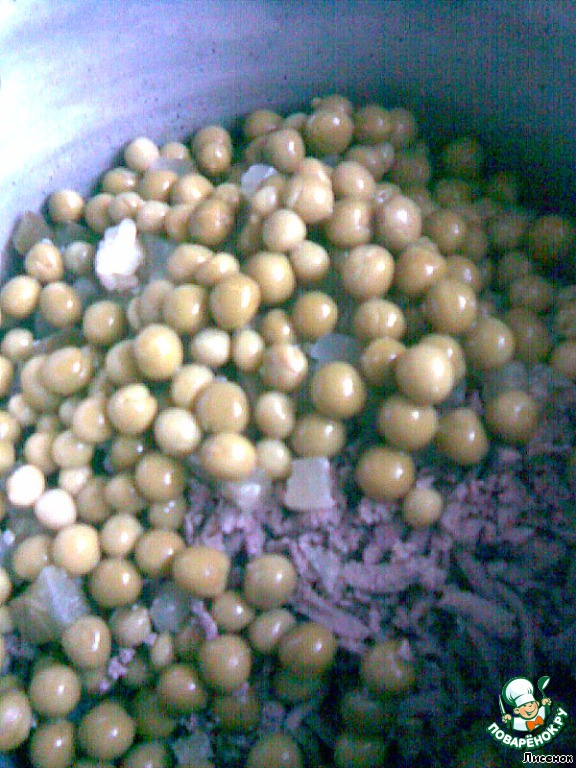 Сегодня у меня встал вопрос о том, куда пристроить оставшуюся от пирога вареную печень и полбанки горошка?