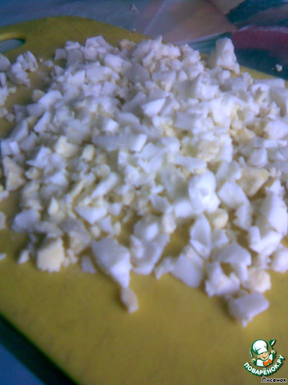 Яйца мелко порубить.