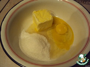Для песочного теста разотрите маргарин, 1яйцо и желток, 100г сахара, соду и ванилин.