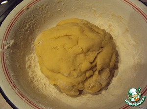 Затем добавьте 2,5 стакана муки, замесите мягкое эластичное тесто. Уберите на холод.