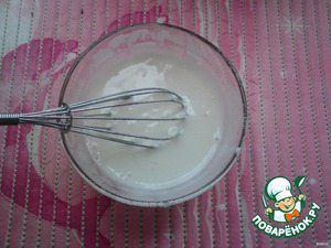 Белок отделить от желтка, добавить сахарную пудру и взбить венчиком до гладкой массы