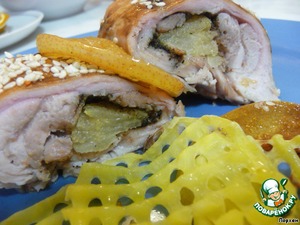 Подаем с дольками груши, обжаренной в сахаре, и картофелем.