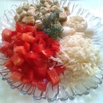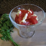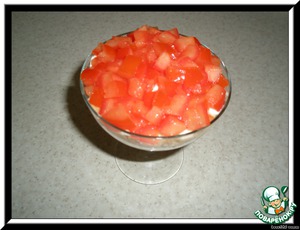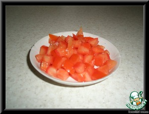 Помидоры чистим от семечек и режем мелкими кубиками.