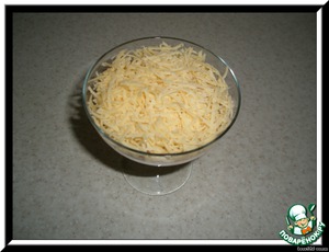 Трем на мелкой терке сыр и выкладываем вторым слоем.