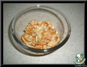 Берем креманочку и выкладываем первым слоем подготовленный крекер.
