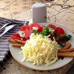 Все что нам нужно для салата - это твердый сыр, крекер "Нежный", помидоры, чеснок, майонез и хорошее настроение.
