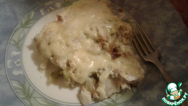 Рыбу отвариваем в соленой воде 15-20 минут, отделяем от костей, режем на мелкие кусочки и добавляем к нашей капусте.