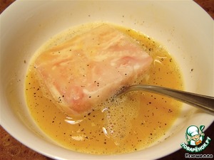 • Яйцо взбалтываем вилкой и добавляем белый перец по вкусу. Можно добавить любые другие специи для рыбы.