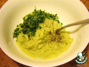 • В полученную смесь добавляем петрушку, соль и черный перец по вкусу и лимонный сок (я увеличила количество лимонного сока до 2 ст. л., так как предпочитаю соус покислее). Хорошо размешиваем.