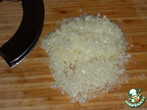 Луковицу нарезать очень мелко и затем обжарить. Можно использовать и сырую, просто мне больше нравится обжаренная, ароматнее получается.