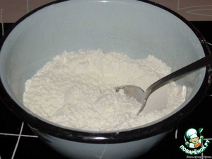 Муку просеять, добавить сахар и соду. Кстати, муки может уйти и меньше, так что лучше ее сразу всю не высыпать, а немного отложить. Если потребуется, добавить после всех продуктов.