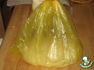 Положить тесто в целлофановый пакет, завязать, чтобы оставалось место, и положить в холодильник на час-полтора.