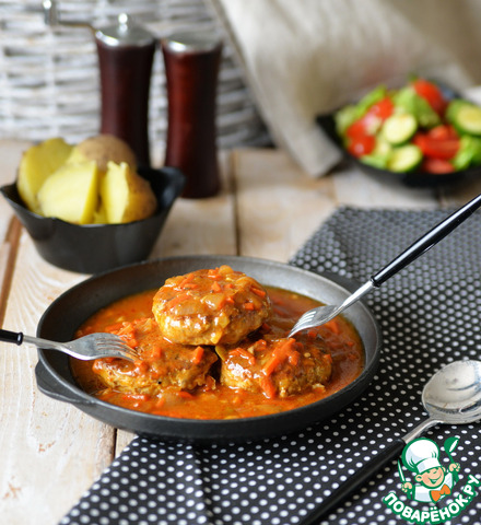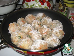 Формируем из фарша тефтельки и, обваляв в муке, обжариваем на сковородке.