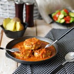 Блюдо для любителей рыбы. Готовится из филе двух рыб: постной - хека и жирной - пангасиуса. В томатный соус добавляется сахар. Попробуйте, очень нежное блюдо.