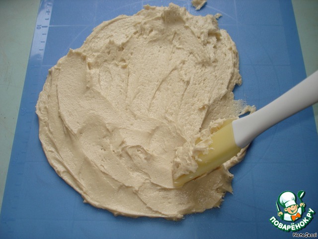 Тонким слоем тесто распределить на пергаментной бумаге или на том, на чем вы будете выпекать.