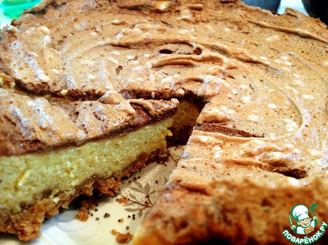 Достаем наш сырник из духовки, аккуратно выкладываем поверху белковую смесь и ставим допекаться при температуре 160 градусов на 1 чаc 15 минут.