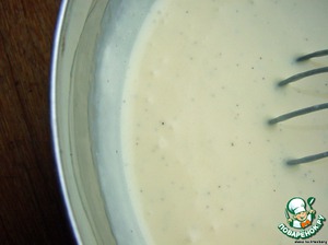 Эту массу соединить с оставшимся молоком и поставить варить на очень маленьком огне, постоянно помешивая венчиком. Как только начнет загустевать, снять с огня. Ни в коем случае не доводить до кипения! -