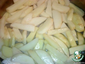 Картофель нарезаем брусочками, сушим, солим