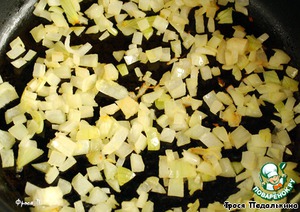 Пассеровать репчатый лук в разогретом оливковом масле.