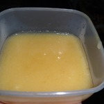 Смешать сок и яйцо, процедить. Можно и не процеживать, но лучше это сделать, чтоб отделить цедру и недовзбитый белок (иначе он свернется).