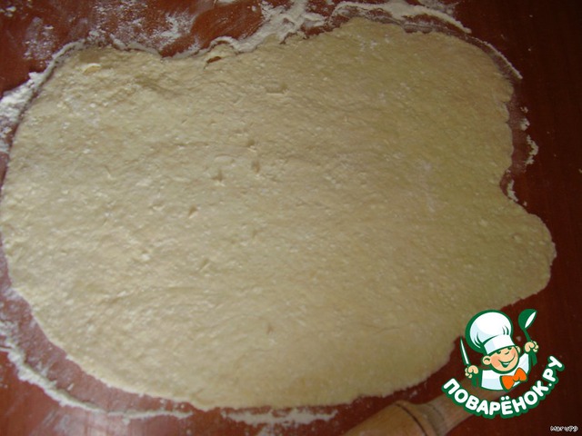 • Возьмите упаковку слоеного теста, раскатайте его в одном направлении, чтобы получился почти прямоугольник.