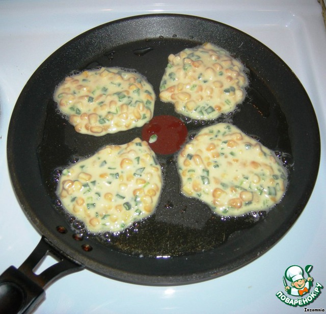 Рецепт «Оладьи из кукурузы с зеленым луком»: