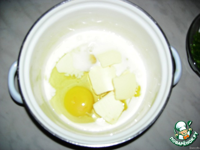 Мягкое масло, яйца и молоко взбиваем миксером.
