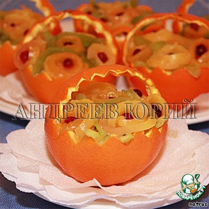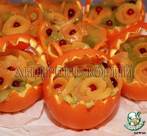 Из целых апельсинов вырезаем корзиночки, примерно такие, как на фото.