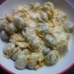 Обжариваем всё до золотистой корочки, добавляем сливки, соль, перец, травки - я брала орегано и укроп, держим на огне, помешивая, пару минут и можно угощаться