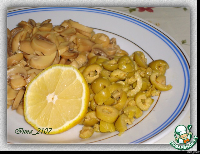 Соединить все ингредиенты и заправить оливковым маслом с соком лимона.
