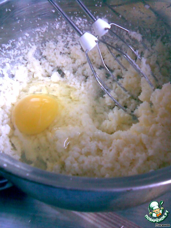 Сахар взбить с маслом. Я масло растопила, иначе было не взбить.