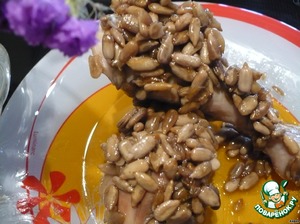 Перенести голени на тарелку, сверху выложить соус из семечек и меда.