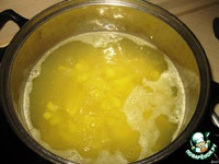 Кусочки филе опустить в суп и варить еще 10 минут с момента закипания.
