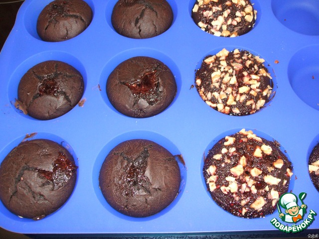 Некоторые кексы (тесто) я еще сверху намазала вареньем и посыпала орехом. (В итоге они получились вкуснее).