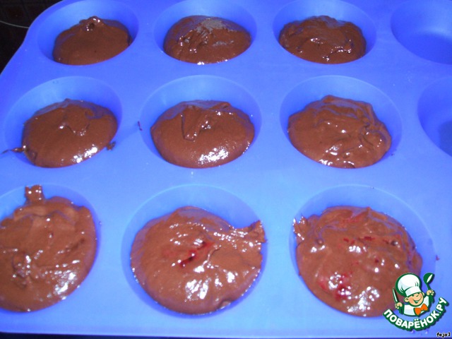 Выложить тесто в форму для кексов, по 1 ст. л. на один кекс.