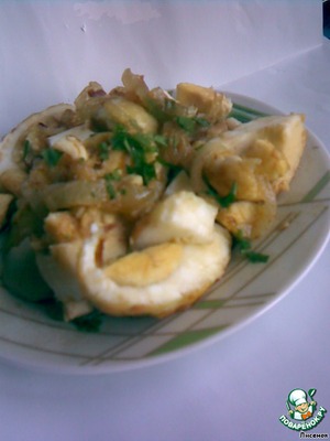 У меня блюдо понравилось всем, наверное, мы любители таких закусок. Но, заправка у меня получилась намного гуще, т.к. я использовала соус Терияки, и лук я подрумянила чуть больше.