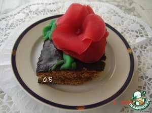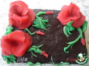 • Приготовим глазурь: смешать какао - 2 ст.л, воду - 5 ст.л, сахар - 4 ст. л., как раз этой порции хватает на торт, залить торт и дать постоять, украсить по желанию.