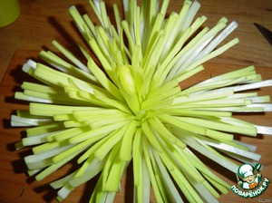 Отступаем от корня лука-порея 10-12 см и отрезаем заготовку.