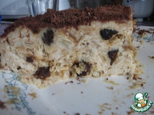 Смешиваем крошку со сметаной, черносливом, шоколадом, перемешиваем, выкладываем массу на тарелку, придаем форму торта.