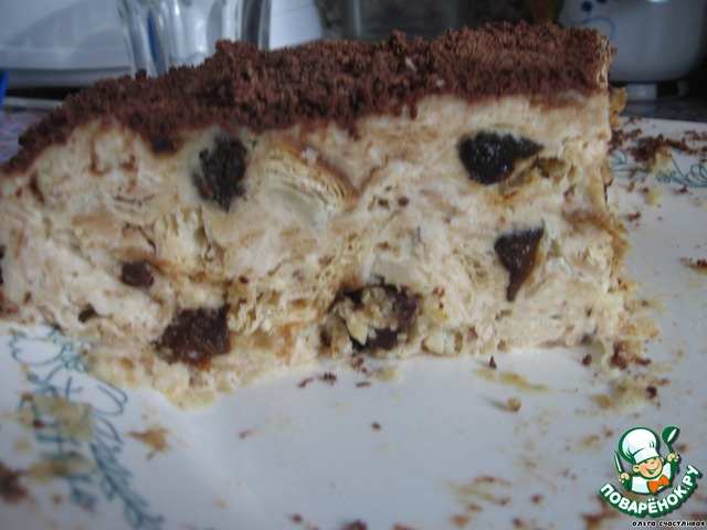Торт сметанный с черносливом и шоколадом не повредит фигуре и порадует нежным вкусом в предстоящий праздник. Эльвирчик, с наступающим!