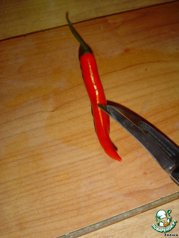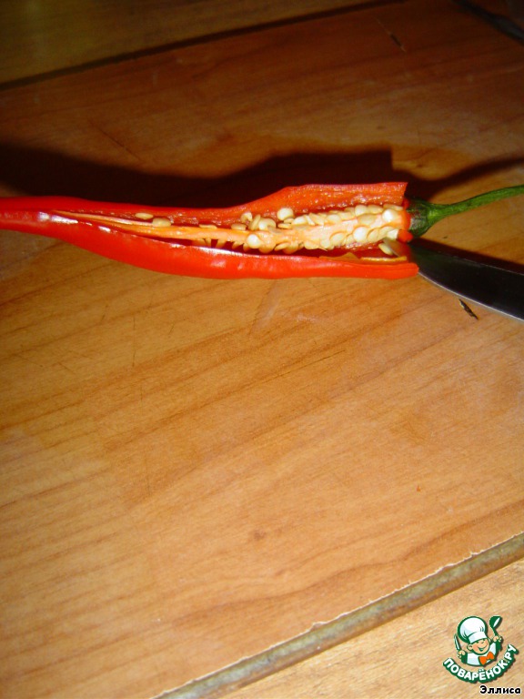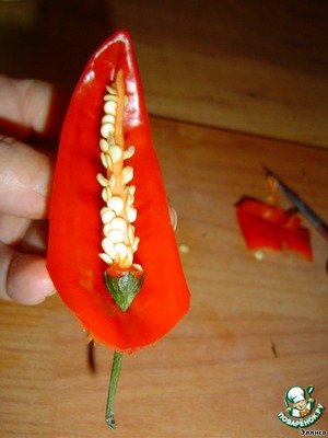 Для изготовления антуриума нам нужен обычный горький перец. Этот перец разрезаем по длине.