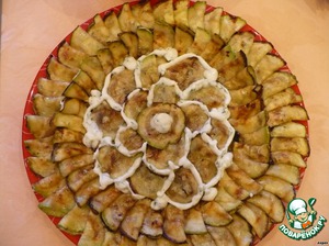Далее, думаю и объяснять не надо. На кружочек - соус, сложили вареником, положили. Кабачки "некондицию" складываем в центр, смазываем соусом и прикрываем "кондицией".