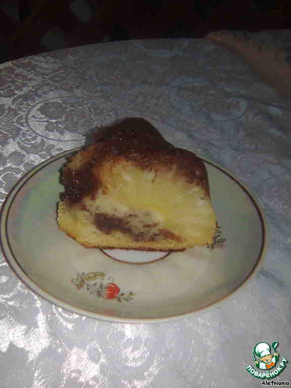 Аккуратно залить сверху тестом с какао, чтобы тесто покрывало ананас и выпекать при темп. 180 около 30 мин. Готовность проверить спичкой.