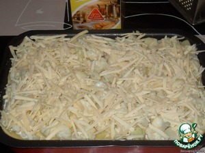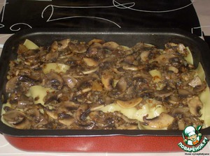 И снова накрыть 1/3 макаронных изделий (у меня, опять же, пластины теста).
